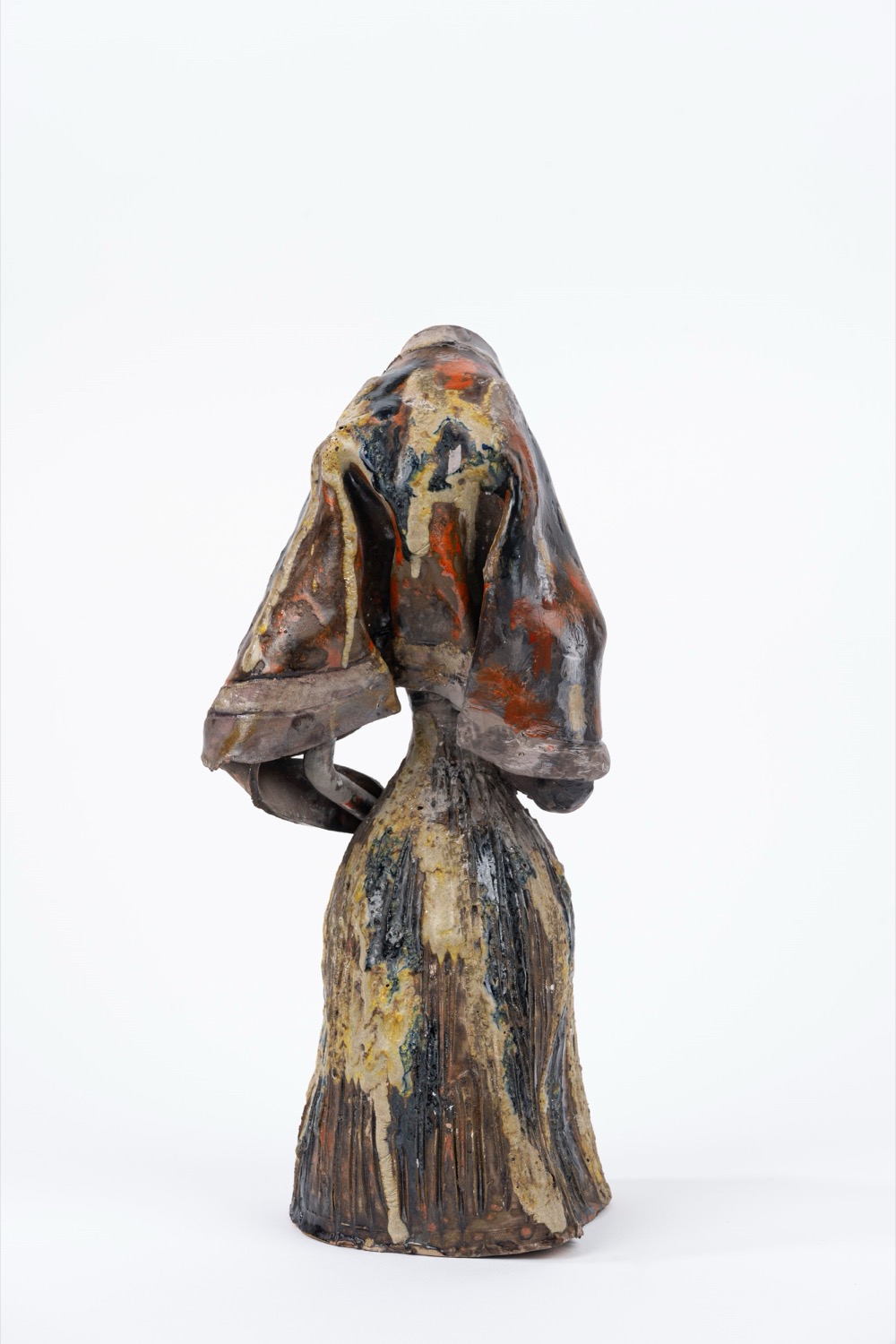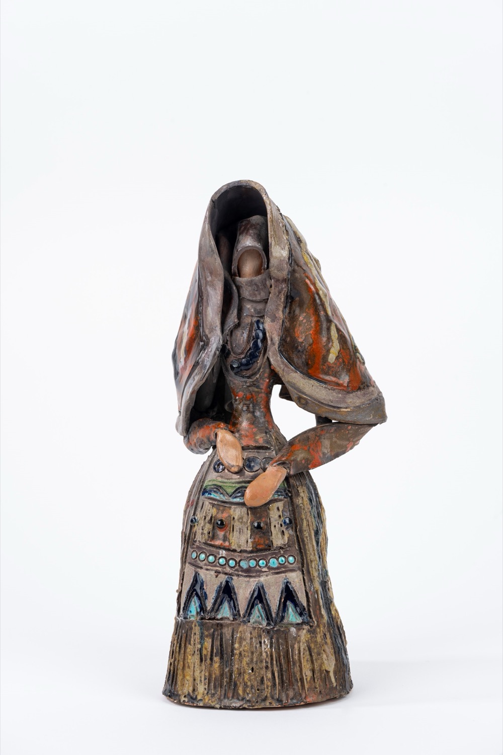 Scultura in ceramica policroma raffigurante donna in costume sardo, Emilia Palomba