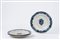 Tre piatti in maiolica bianca e blu, con stemma araldico al centro