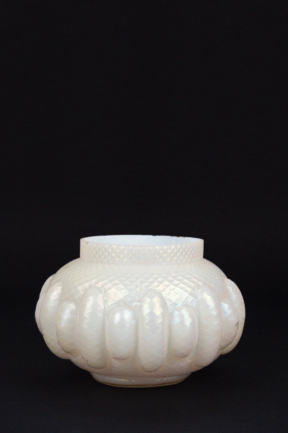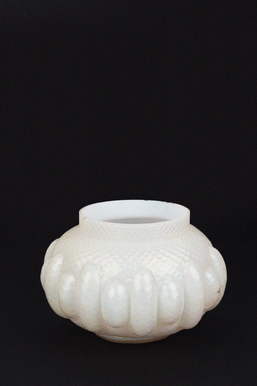Vaso di forma circolare in vetro bianco baccellato