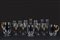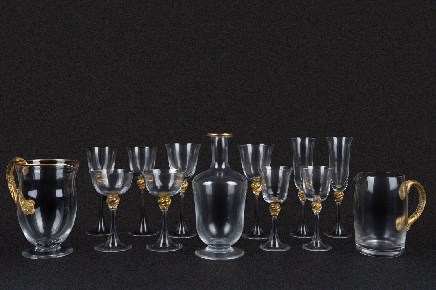 composto da due brocche e una bottiglia, 10 calici da acqua, 8  calici da vino, 12 da liquore, 10 flutes e 10 coppe da champagne