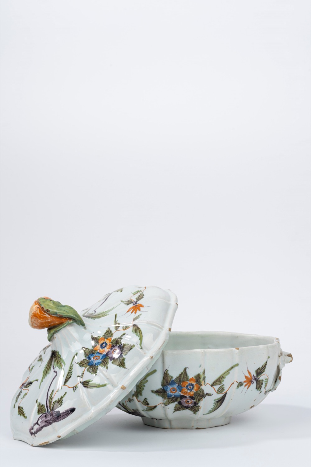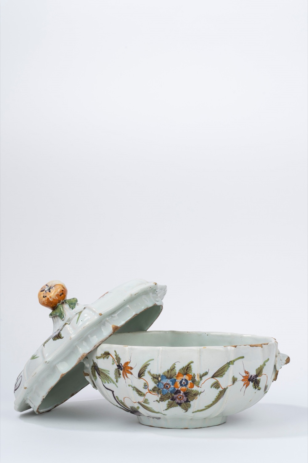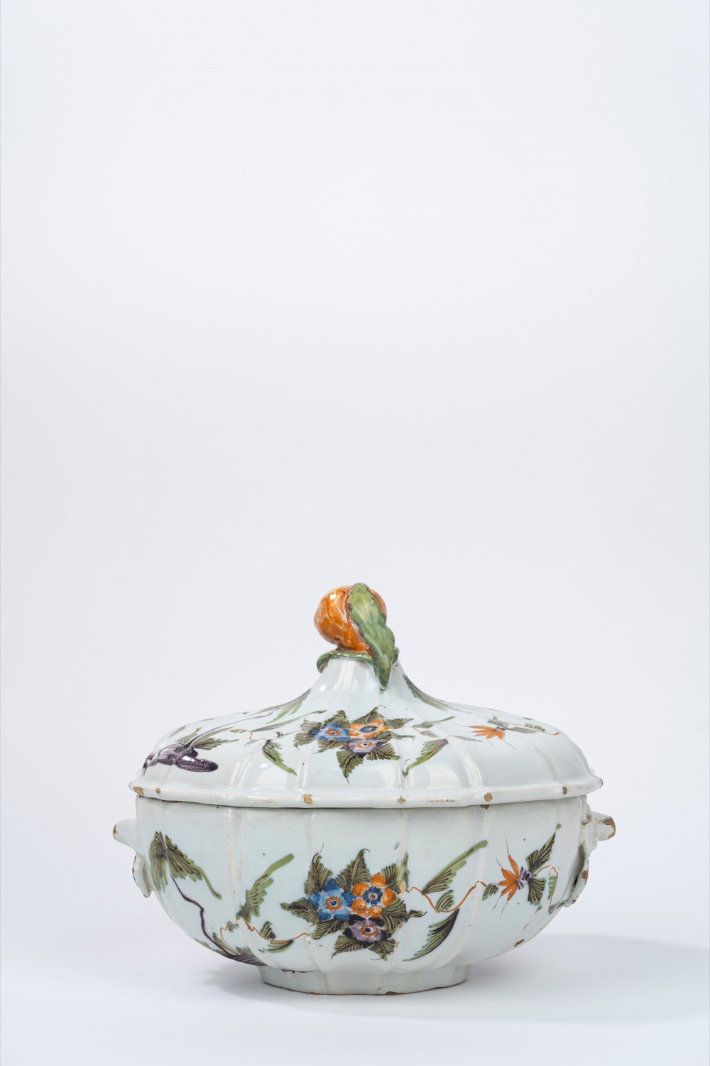 Zuppiera in maiolica con coperchio, manifattura veneta secolo XVIII