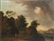 Scuola fiamminga, secolo XVII - Paesaggio fluviale con astanti