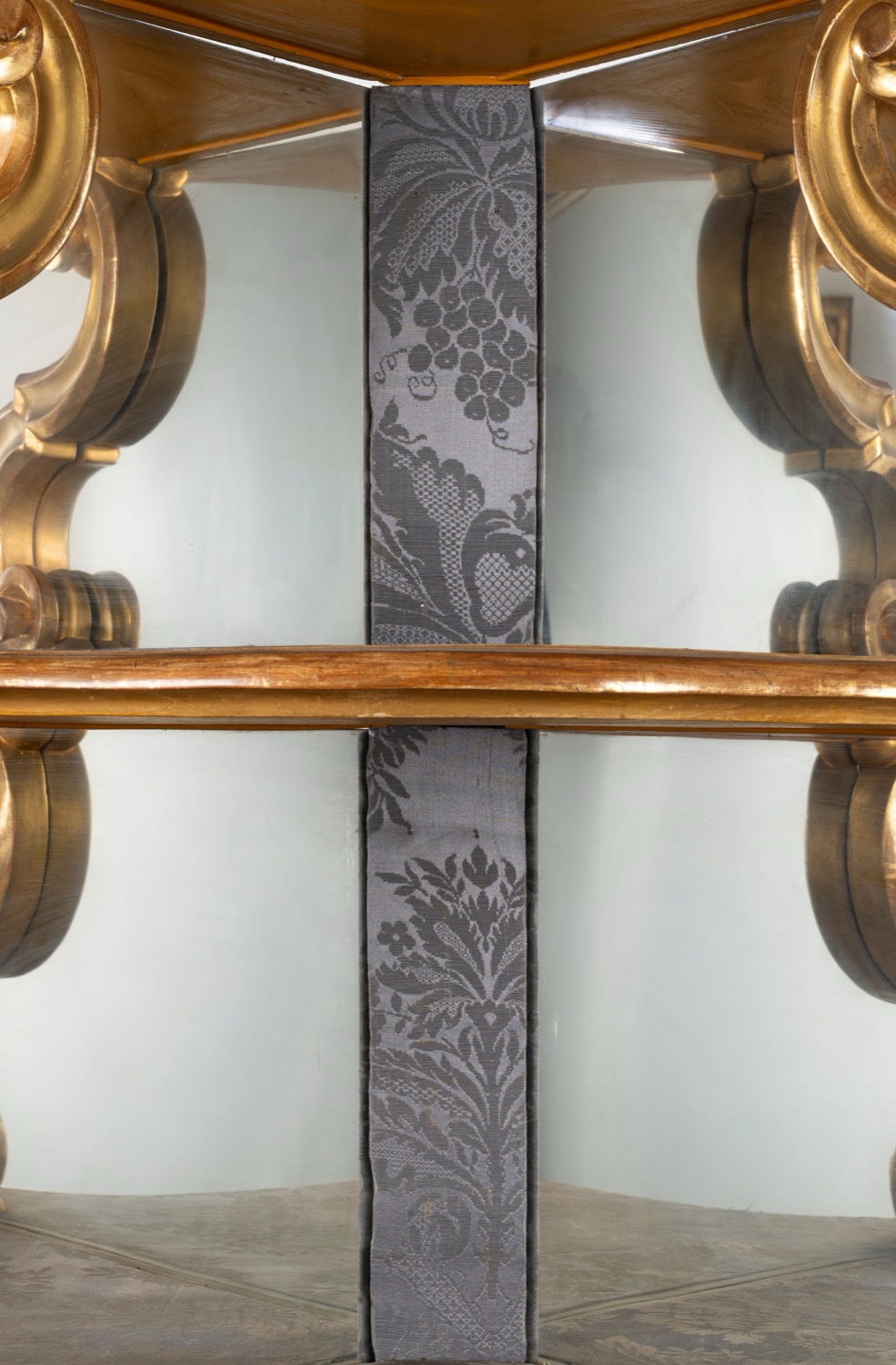 Etagère angolare in legno intagliato e dorato, in stile Luigi XV, secolo XIX