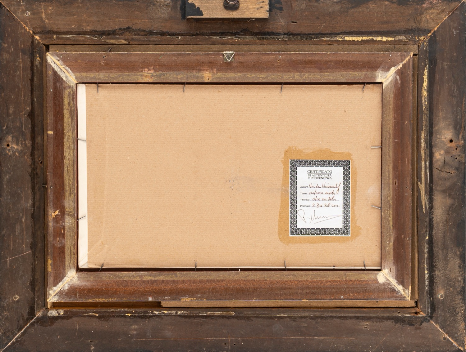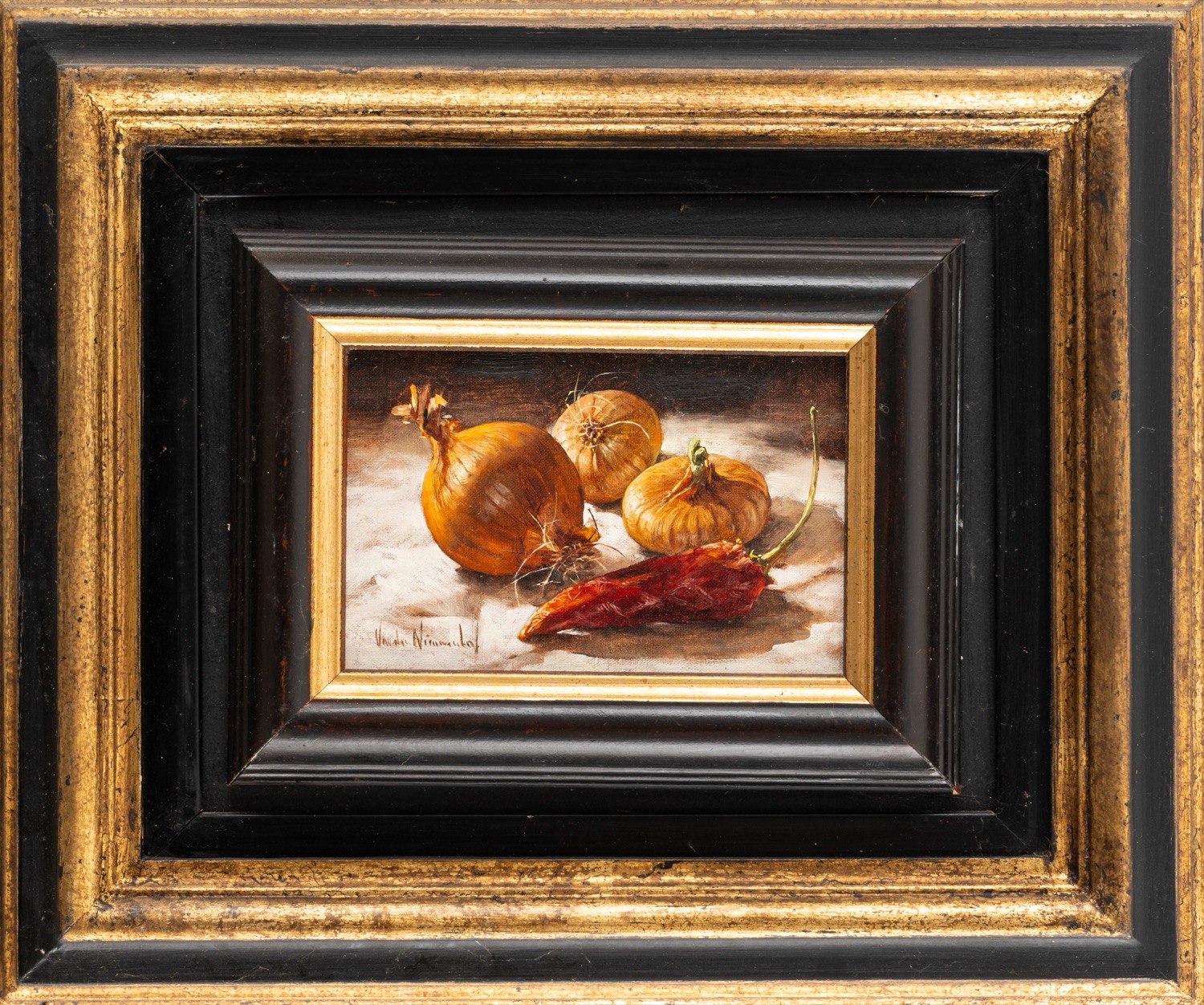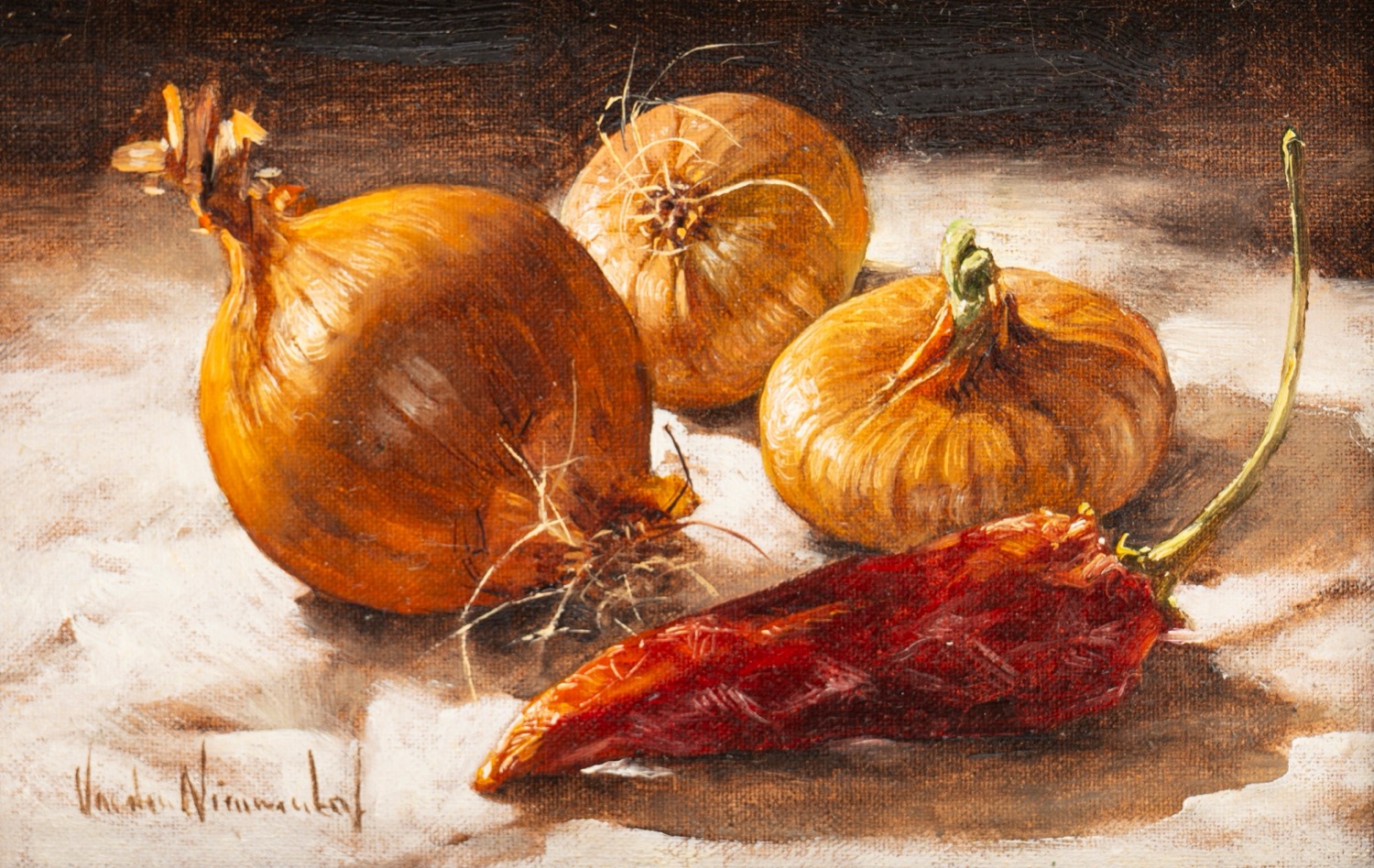 uno con melanzane e cipolle, firmato in basso a destra: Van den Nieuwenhof, l'altro con cipolle e peperoncino, firmato in basso a sinistra: Van den Nieuwenhof