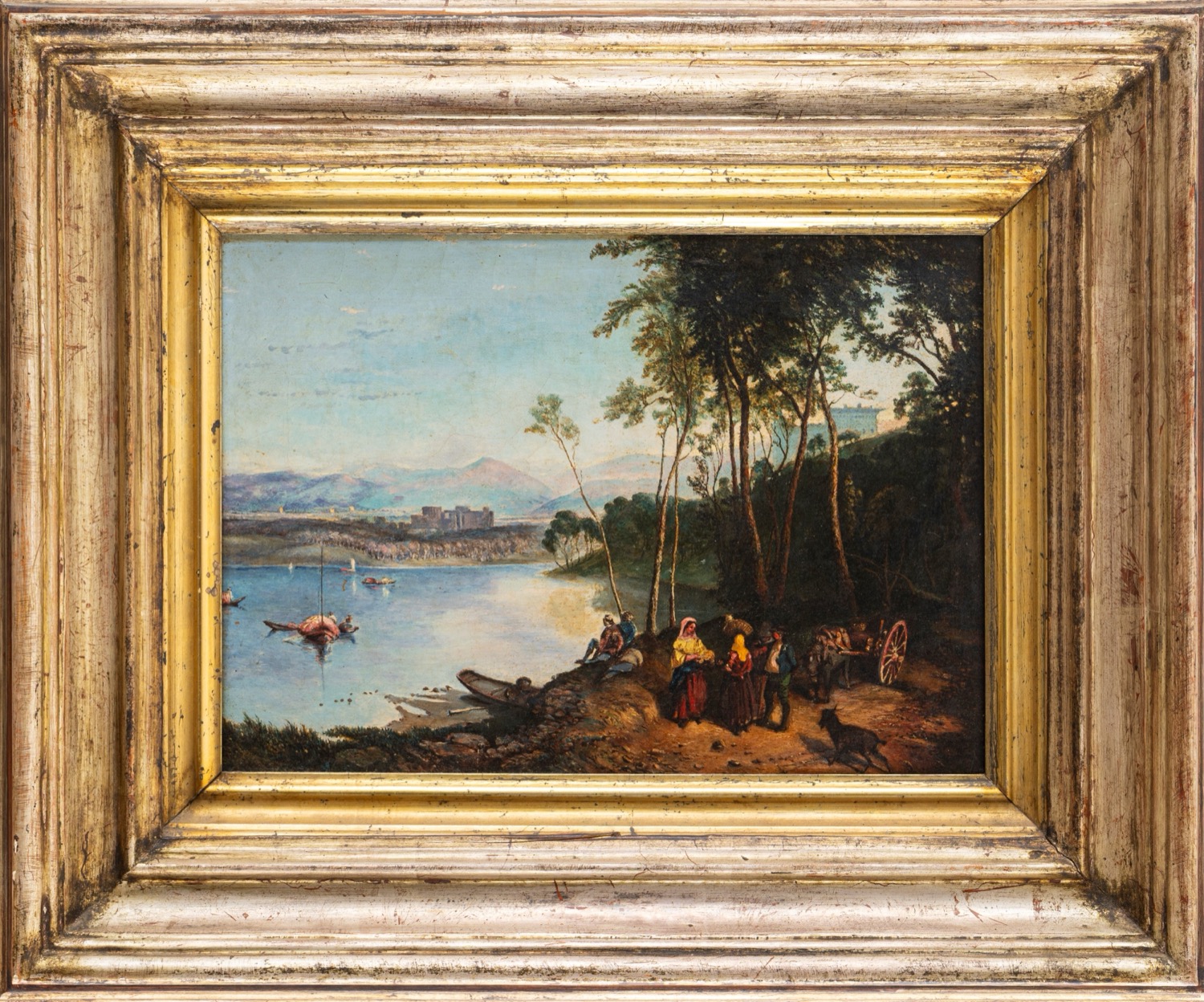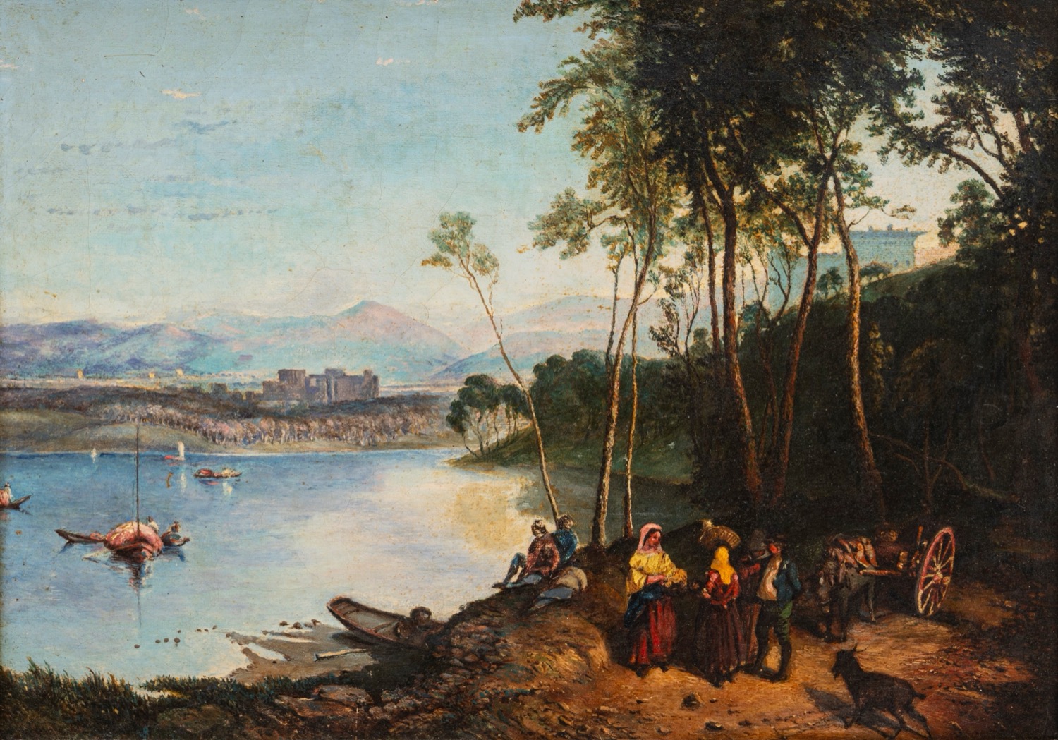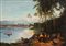 Scuola italiana, secolo XIX - Paesaggio lacustre con figure di popolani