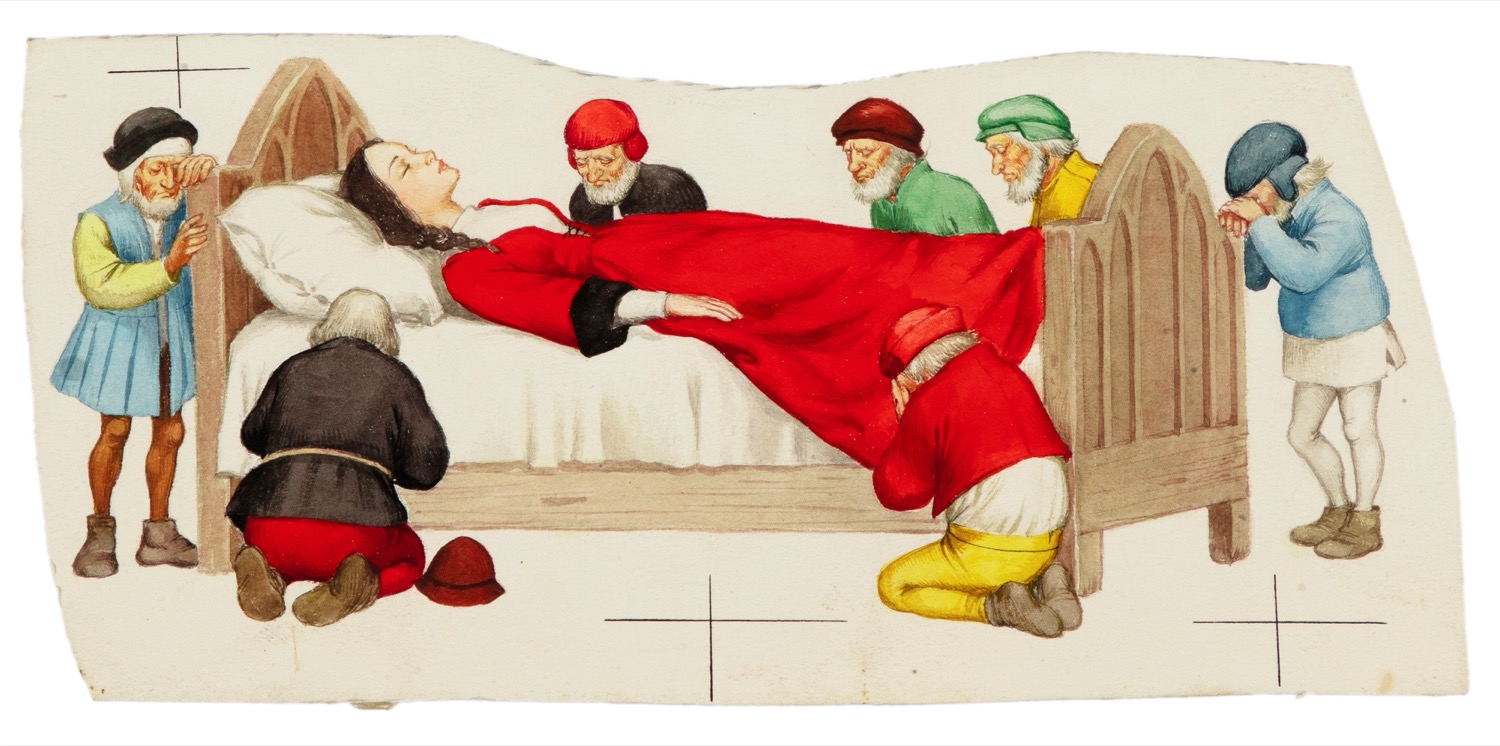 Illustrazione originale realizzata da Nardini per la fiaba "Biancaneve" edita nel 1959.