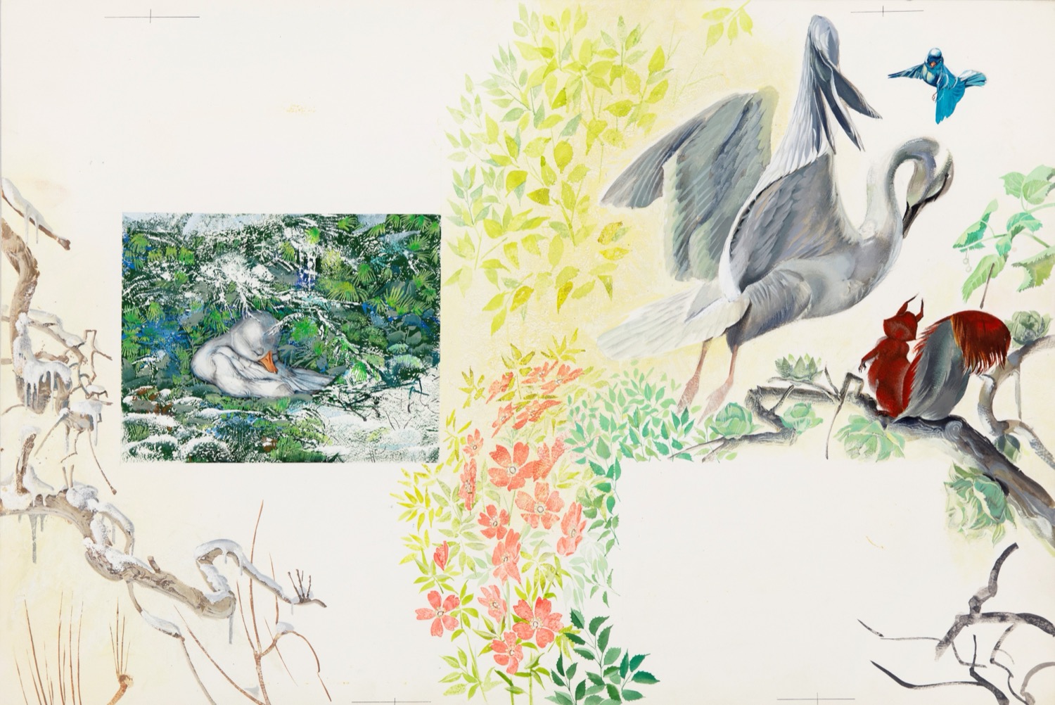 Illustrazione originale realizzata da Fontana per la fiaba "Il brutto anatroccolo" edita nel 1966.