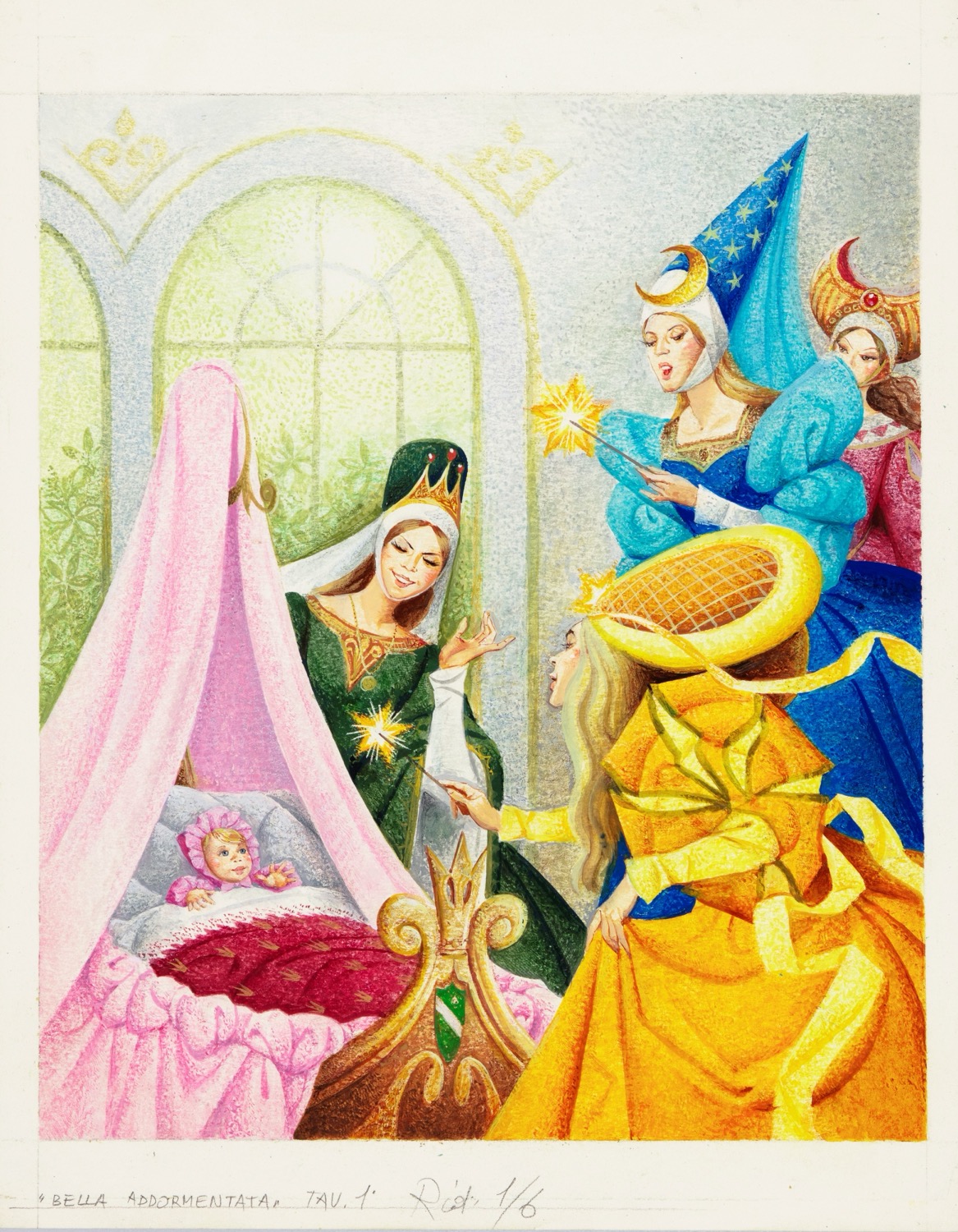 Illustrazione originale realizzata da Baraldi per la fiaba "La bella addormentata nel bosco" edita nel 1982.