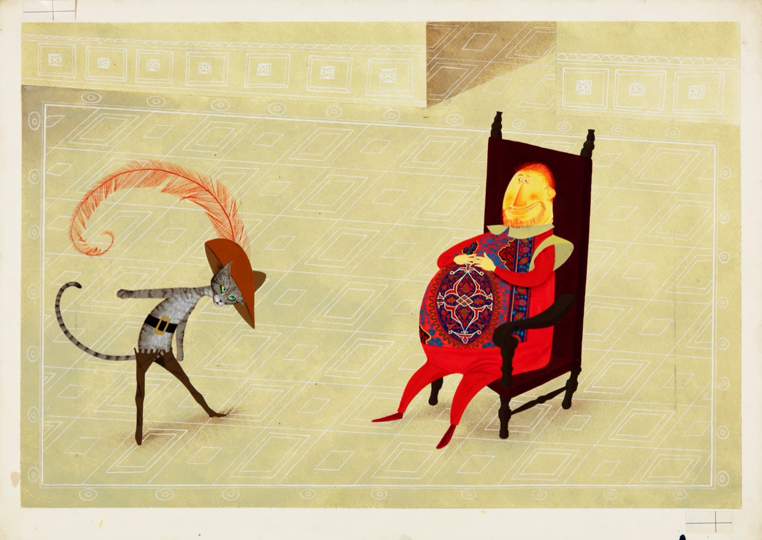 Illustrazione originale realizzata da Santin per la fiaba "Il gatto con gli stivali" edita nel 1962.