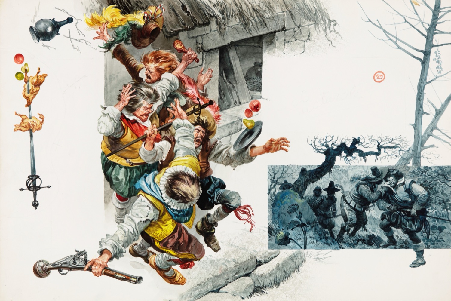 Illustrazione originale realizzata da Ferri per la fiaba "I musicanti di Brema" edita nel 1967.