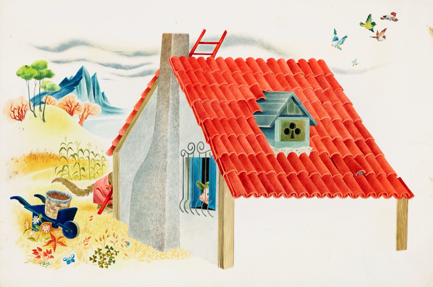 Illustrazione originale realizzata da Lupatelli per la fiaba "I tre porcellini" edita nel 1968.