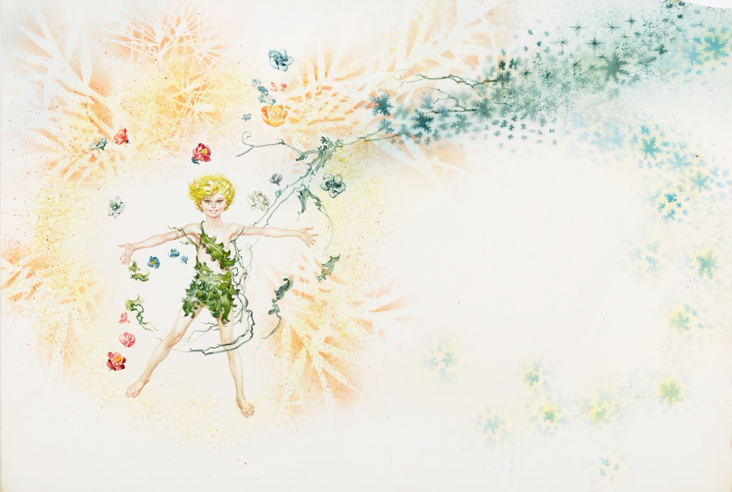 Illustrazione originale realizzata da Ferri per la fiaba "Peter Pan" edita nel 1968. Piccola mancanza all'angolo superiore destro.
