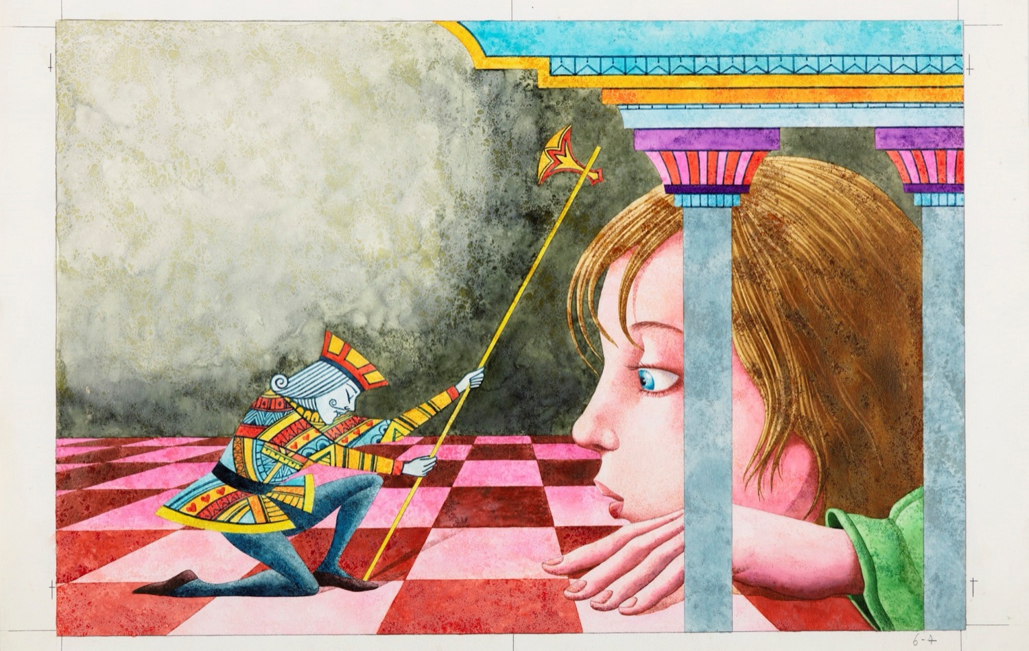 Illustrazione originale realizzata da Ronco per la fiaba "Le carte magiche" edita negli anni '80. Lieve ondulatura della carta.