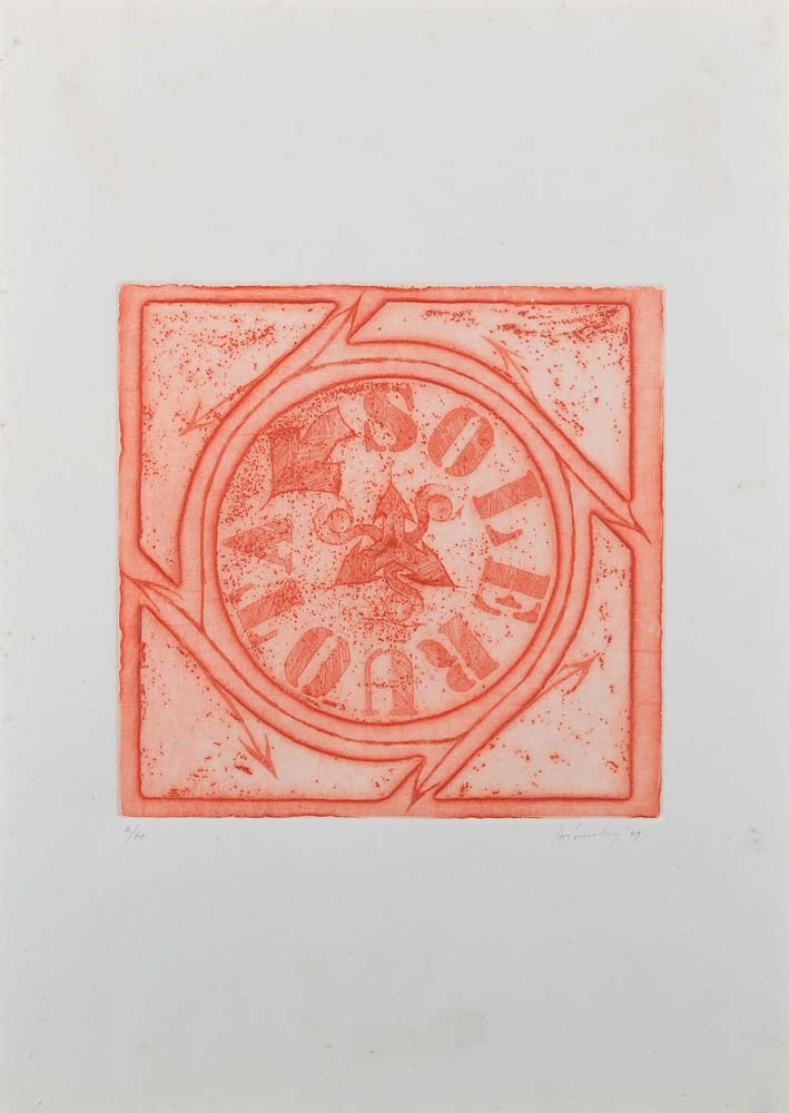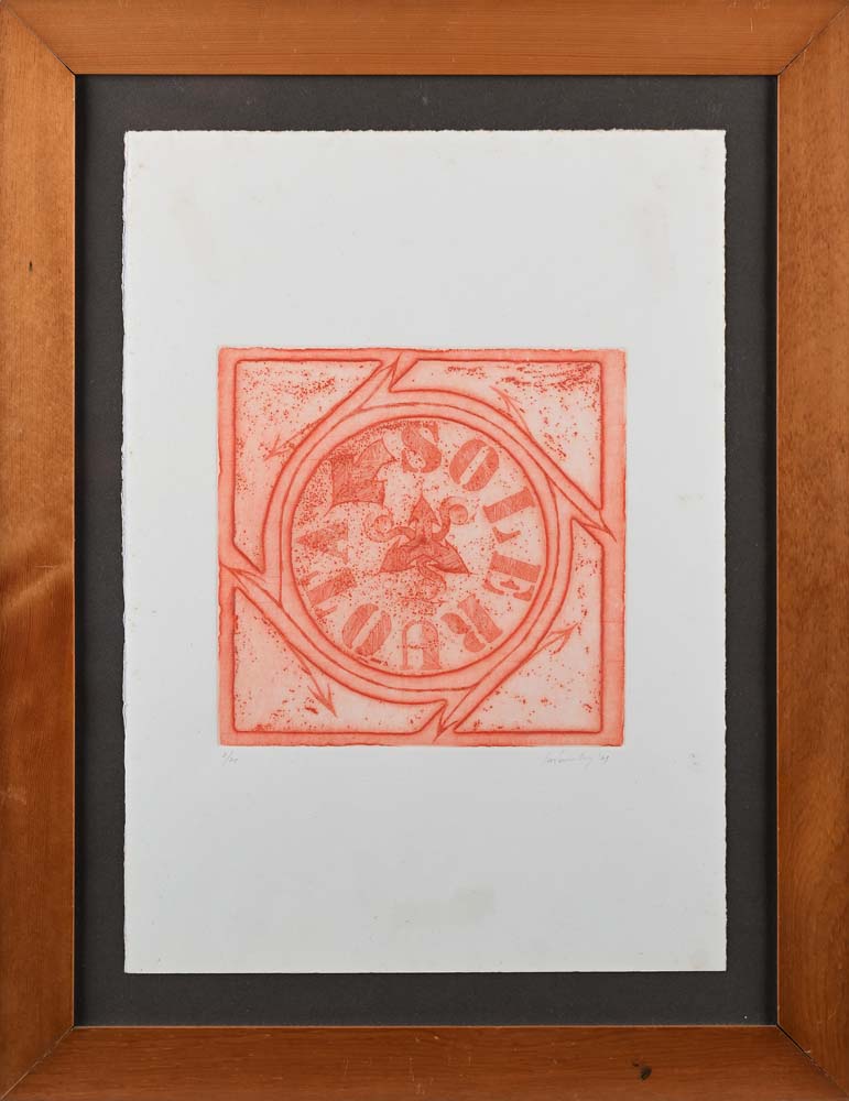 Sole Ruota 1969 Firma, data e numerazione "Pomodoro '69, 2/70" Acquaforte/acquatinta cm 50x35 - in cornice cm 65x50