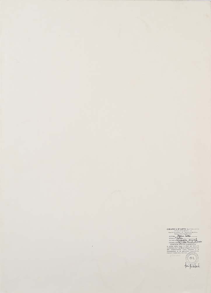 Volto Firma e numerazione "Mario Tozzi 75/100". Al verso timbro a inchiostro della Grafica d'Arte Lombardi Roma Litografi cm 70x50