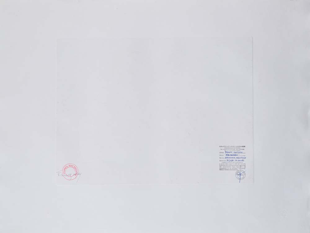 Nudo di donna seduta Firma e numerazione "Guttuso 50/125". Timbro a secco Grafica d'Arte Lombardi Roma. Al verso timbro a inchiostro della Grafica Lombardi Roma Acquaforte/acquatinta cm 60x80