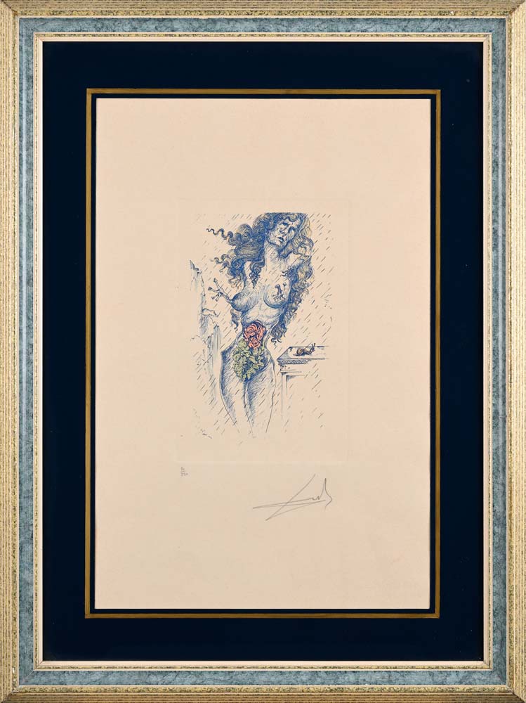 Nudo di donna Firma e numerazione "Dalì 20/250" Acquaforte/acquatinta cm 52x35 - in cornice cm 73x55