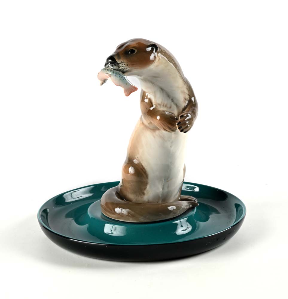 Lontra, Lenci - Torino Sotto la base reca marchio "Lenci Made in italy" ed etichetta Lenci Torino Made in italy. Scultura in ceramica dipinta cm h 24x24 Ø circa
