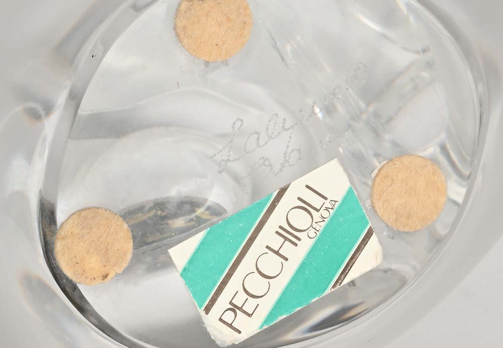 Vetro lalique modello Silvy Sotto la base reca firma incisa "Lalique" ed etichetta Pecchioli Genova cm h 21x18x10 circa