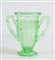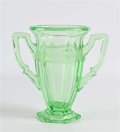 Coppa biansata in vetro verde, XX secolo piede esagonale cm 27x29x18