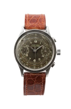 ULYSSE NARDIN Cronografo due contatori anni '40 Diam. 35 Cassa a moneta in...