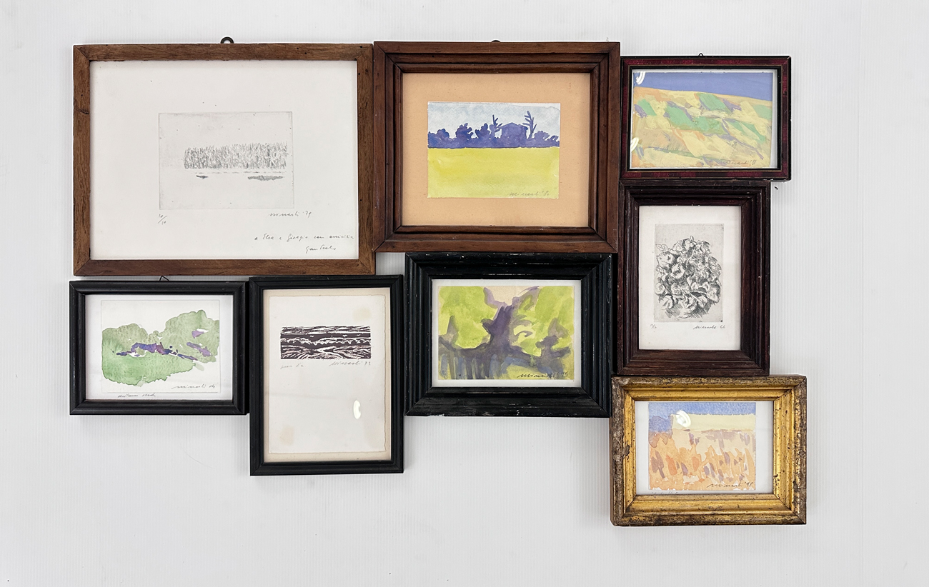 Lotto unico di 5 acquerelli su carta, ciascuno recante firma e datazione al fronte, e 3 opere grafiche firmate e numerate a matita al fronte