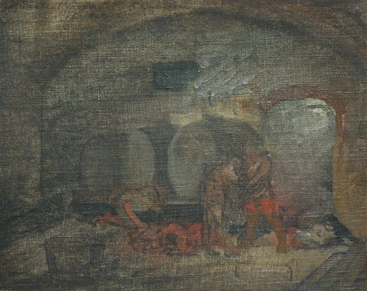 QUADRONE GIOVAN BATTISTA Mondovì (CN) 1844 - 1898 Torino "Interno con figure"...