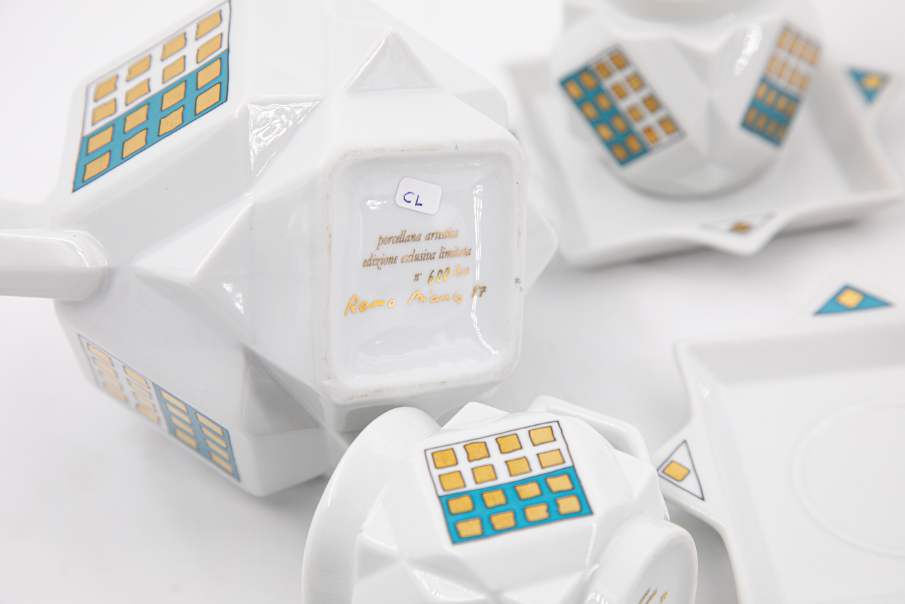 Firma, datazione, numerazione (Esemplare 287/800) e iscrizione 'Porcellana artistica edizione esclusiva limitata' serigrafate sotto la base della teiera