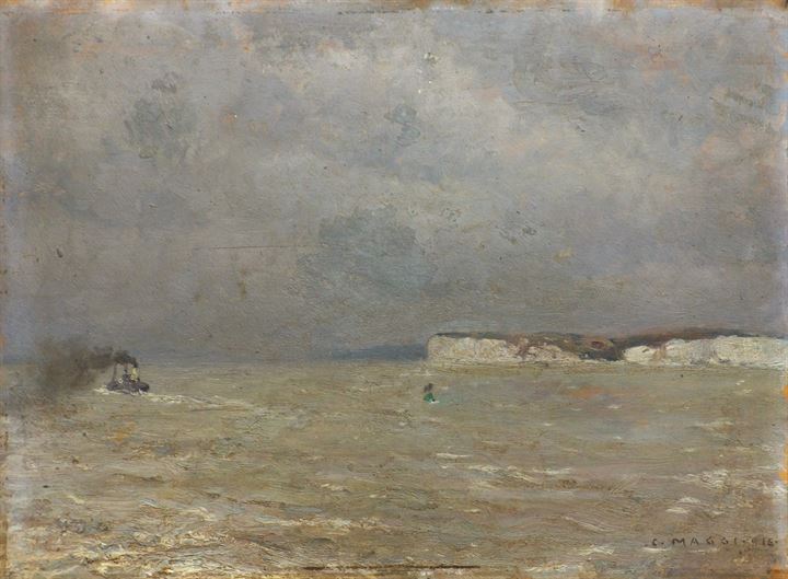 MAGGI CESARE Roma 1881 - 1961 Torino "Mare del Nord" 1916 30x40 olio su...