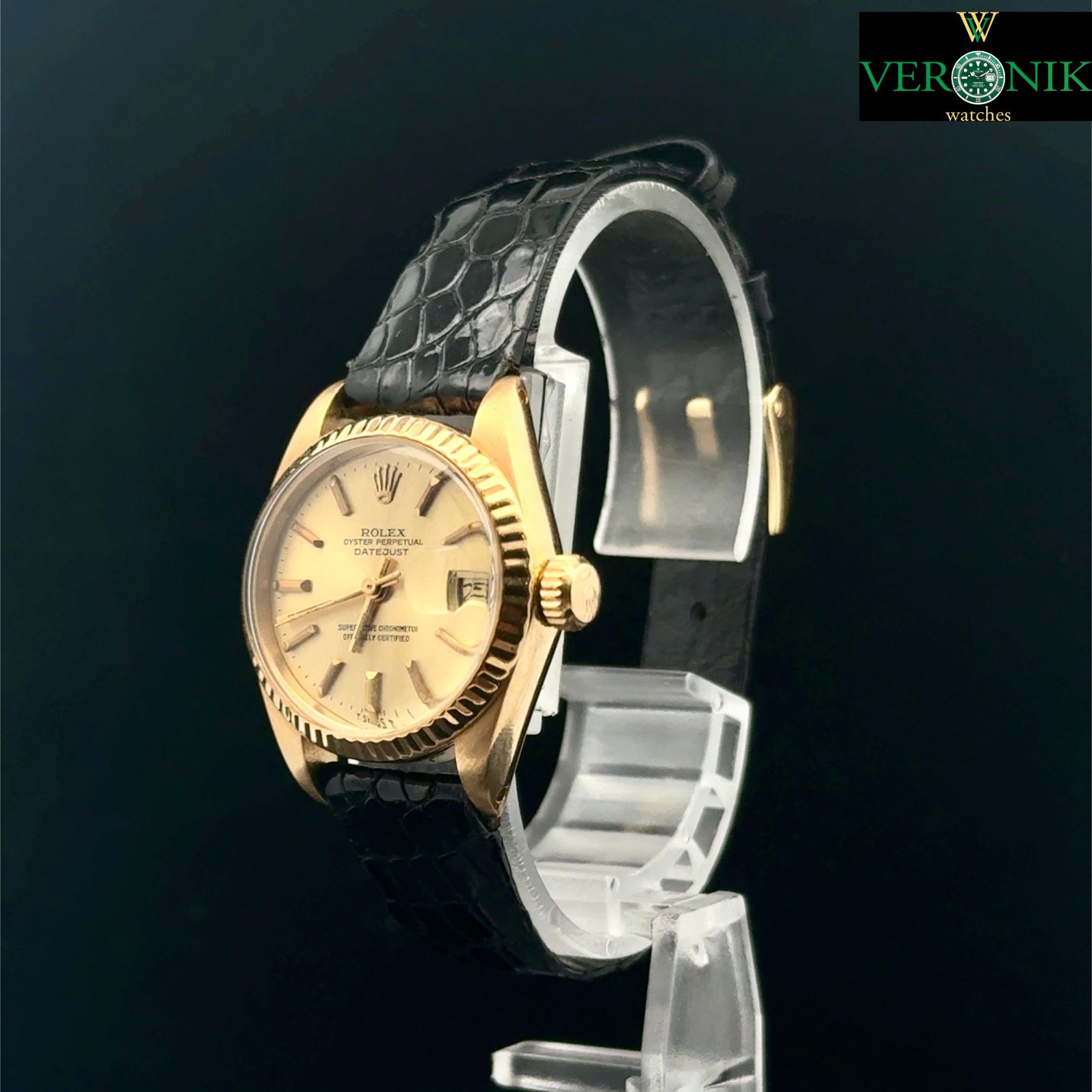 Marca Rolex Modello (Orologio) Lady-Datejust Numero di referenza 6917 Carica Automatico Materiale della cassa Oro Anno di produzione 1977 (Anno approssimativo) Condizione Usato (Ottimo) L'articolo presenta segni di usura lievi, come ad esempio graffi leggeri, ma non percepibili al tatto. No documenti originali, no box 1 anno di garanzia Cassa Materiale della cassa Oro Diametro 26 mm Materiale lunetta Oro giallo Vetro plexiglas No box, documenti originai Cinturino pelle Rolex aftermarket con fibbia originale Rolex - COMMISSIONE D’ASTA 25%