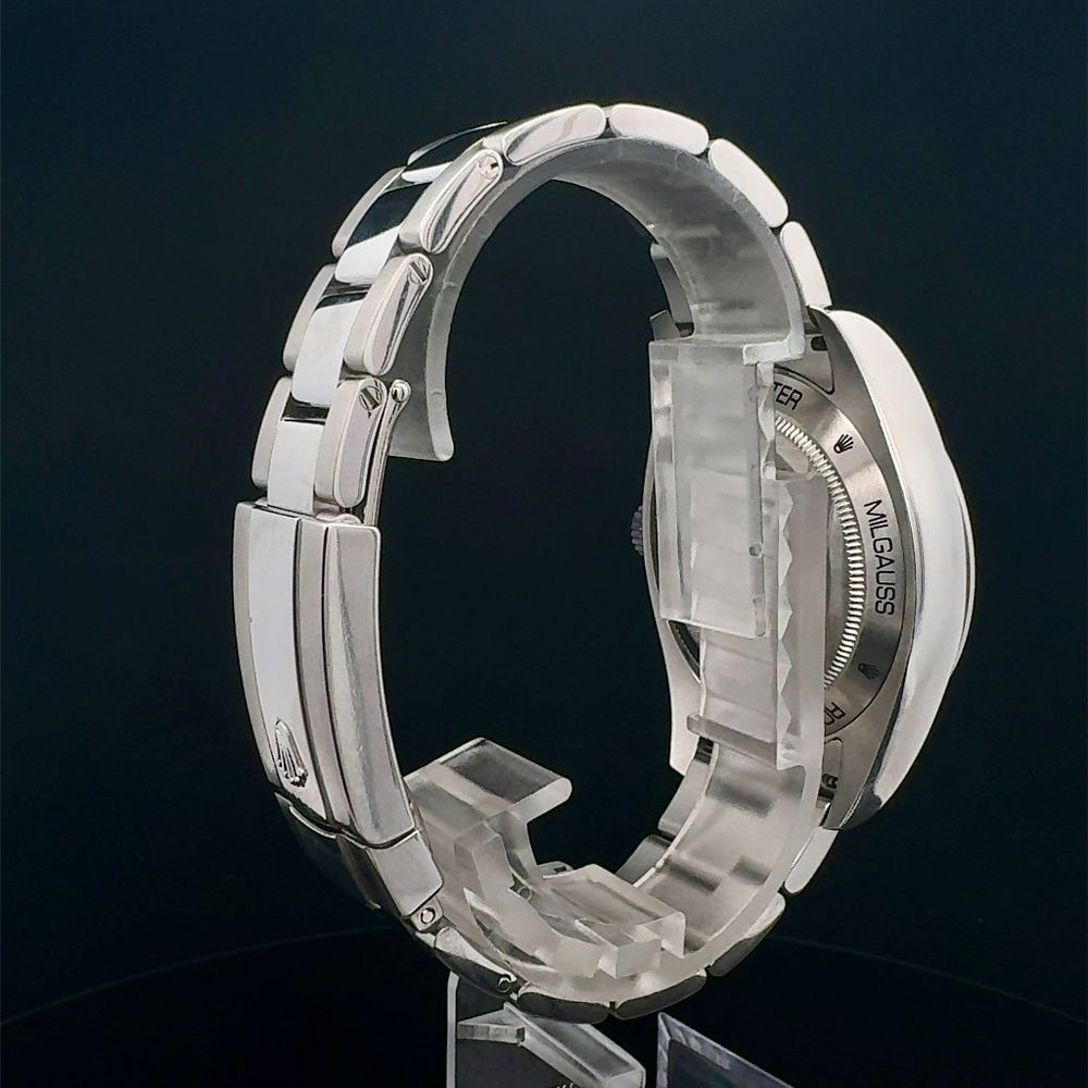 Marca Rolex Modello (Orologio) Milgauss Numero di referenza 116400GV Carica Automatico Materiale della cassa Acciaio Materiale cinturino Acciaio Anno di produzione 2008 documenti originali Rolex, no box Materiale della cassa Acciaio Diametro 40 mm Impermeabile 10 ATM Materiale lunetta Acciaio Vetro Vetro zaffiro Quadrante Nero Numeri sul quadrante Senza numeri Cinturino Materiale cinturino Acciaio Colore cinturino Acciaio Chiusura Déployante Materiale chiusura Acciaio Altro