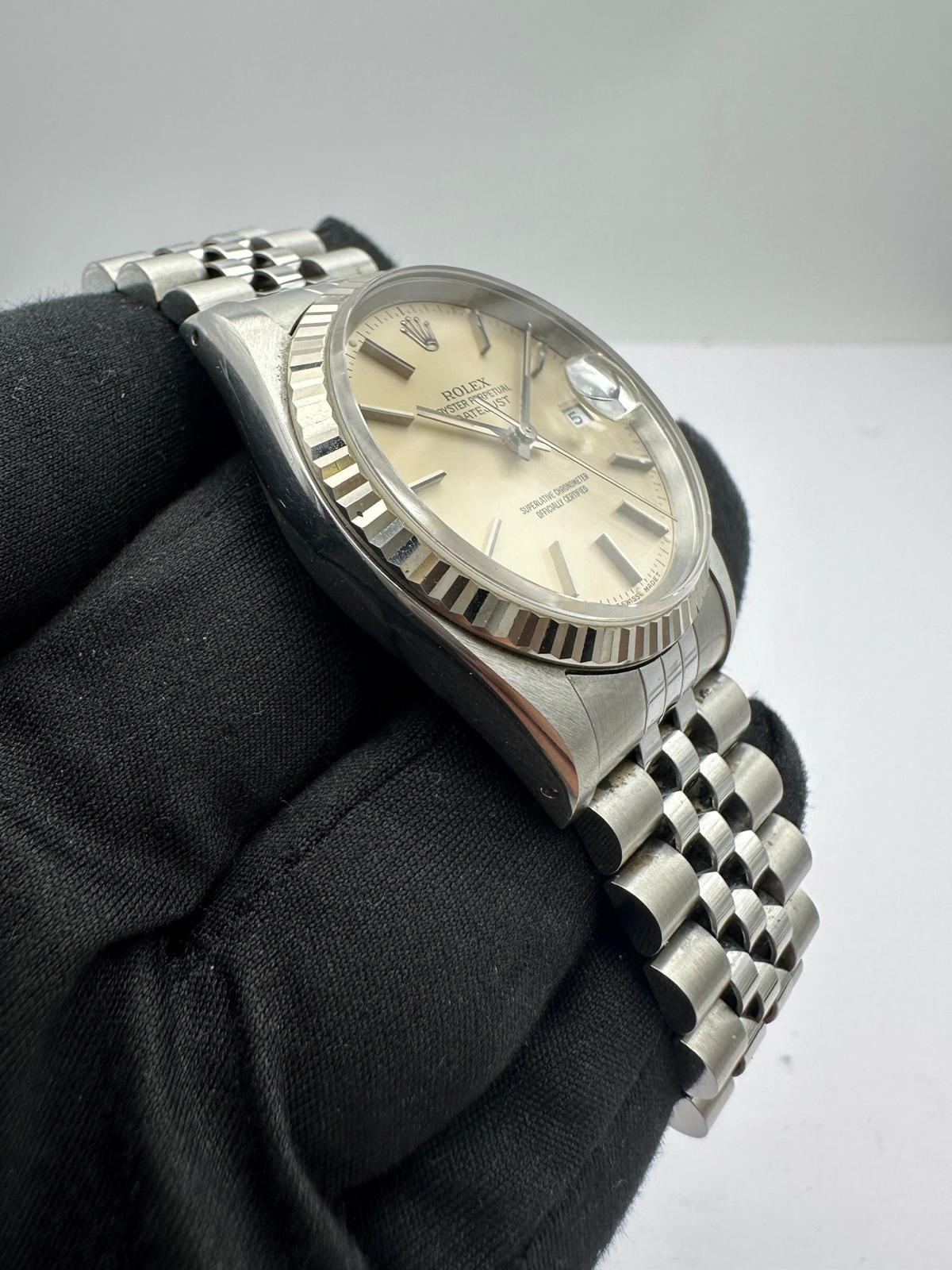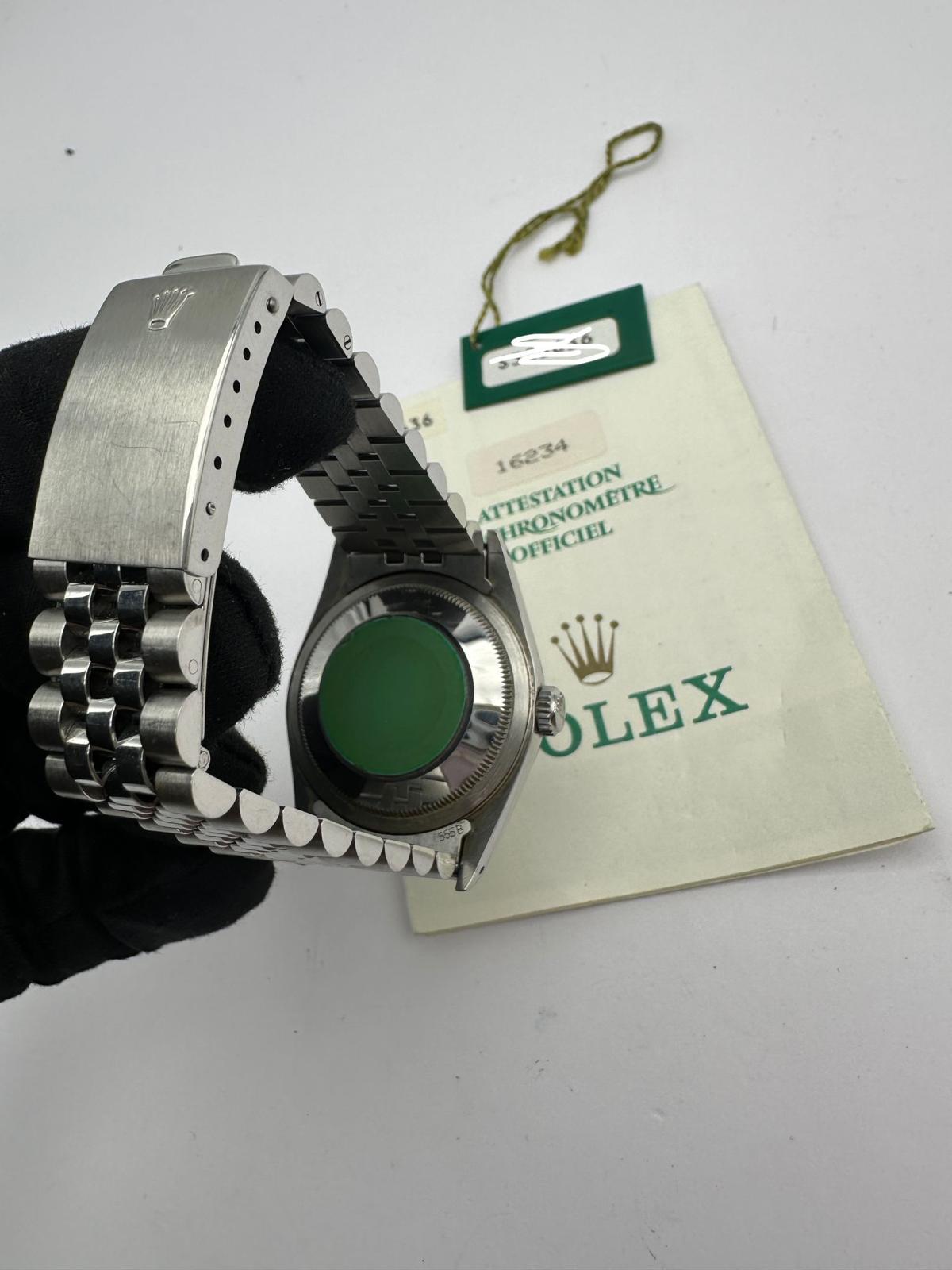 Marca Rolex Modello (Orologio) Datejust 36 Numero di referenza 16234 Carica Automatico Materiale della cassa Acciaio Materiale cinturino Acciaio Anno 1994 Condizione Usato (Ottimo) L'articolo presenta segni di usura lievi, come ad esempio graffi leggeri, ma non percepibili al tatto. documenti originali Rolex, no box, la scatola viene utilizzata solo per fotografie non è in vendita Carica Automatico Cassa Materiale della cassa Acciaio Diametro 36 mm Impermeabile 10 ATM Materiale lunetta Oro bianco Vetro Vetro zaffiro Cinturino Materiale cinturino Acciaio Colore cinturino Acciaio Chiusura Déployante Materiale chiusura Acciaio