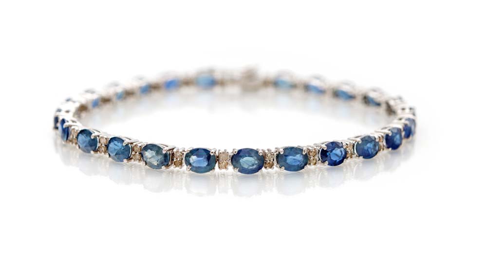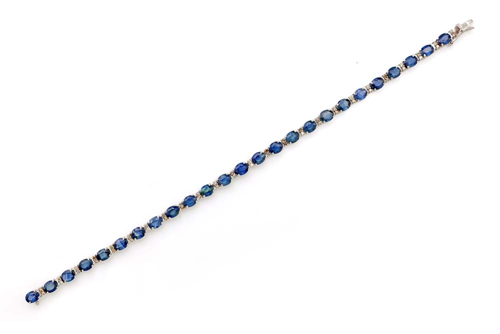Lot 28 | Bracciale tennis in oro, zaffiri e brillanti Oro bianco 750/000. Zaffiri in...