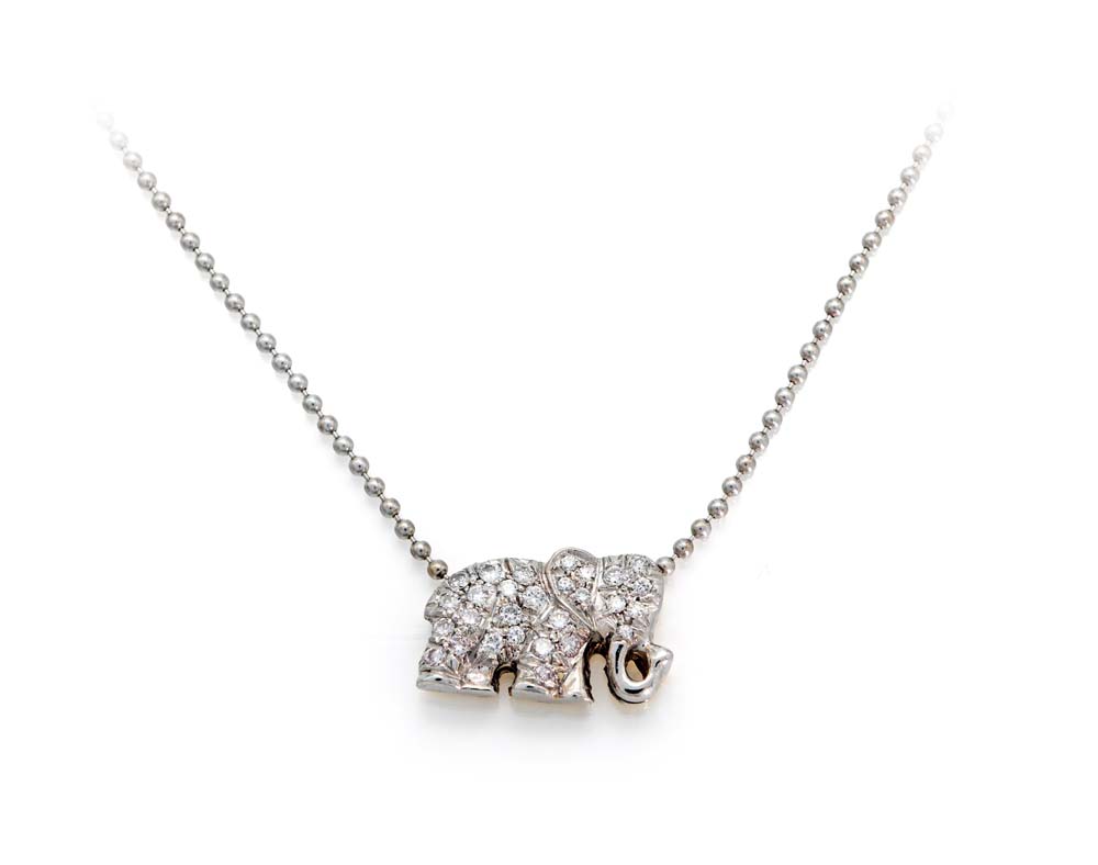 Collana pendente con elefantino in oro e brillanti Oro bianco 750/000. Peso...
