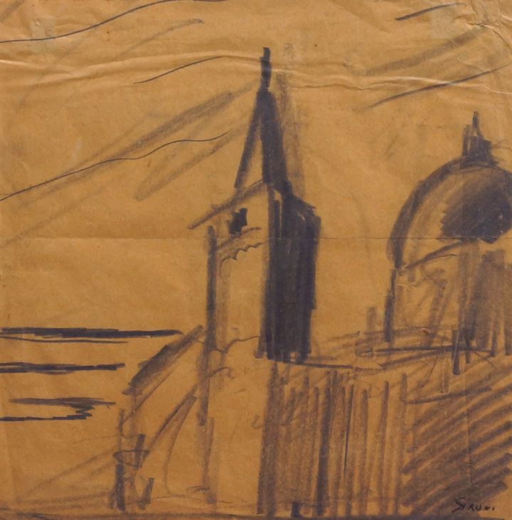 SIRONI MARIO Sassari 1885 - 1961 Milano "Chiesa con cupola" prima metà anni...