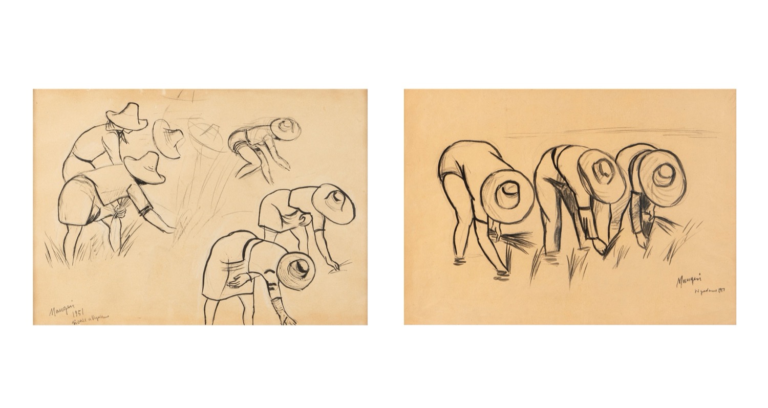 Firmato e datato in basso a sinistra: Maugeri, Risaie a Vigevano, 1951