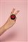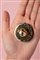 dorato, di forma circolare su perno girevole, con al centro smalti policromi contornati da sfere in onice, firmato e punzonato.