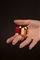 dorato, a quattro elementi di cui uno in pasta di corallo rosso, firmato e punzonato.