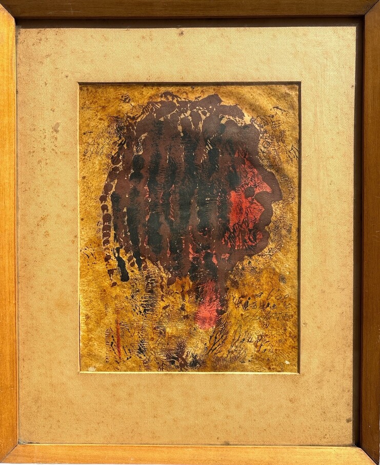 tecnica mista su carta 23 x 17 cm Dedicato e firmato in basso a destra. In cornice.