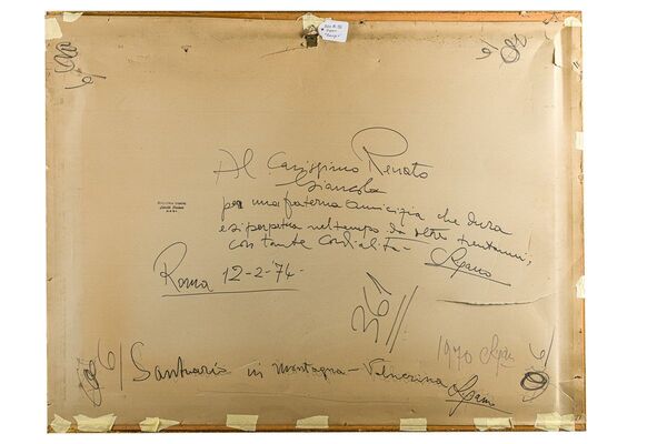 firmato e datato sul retro Ripano, Roma 1974, con dedica, in cornice