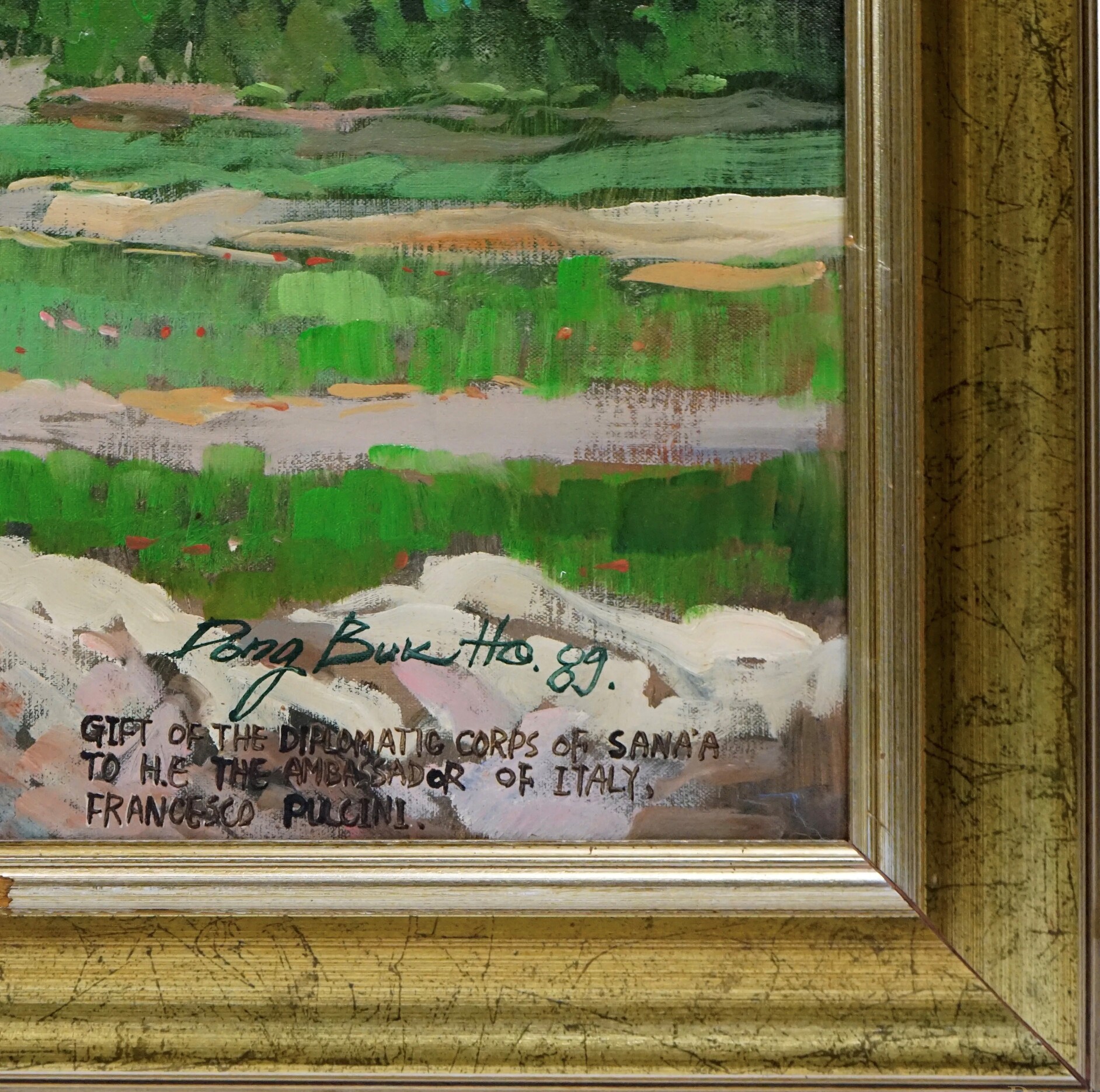 olio su tela 90,5 x 152,5 cm Firmato e datato in basso a destra: Dong Buy Ho. Recante iscrizione: "Gift of the Diplomatic Corps of Sana'a to the ambassador of Italy, Francesco Pulcini". In cornice.
