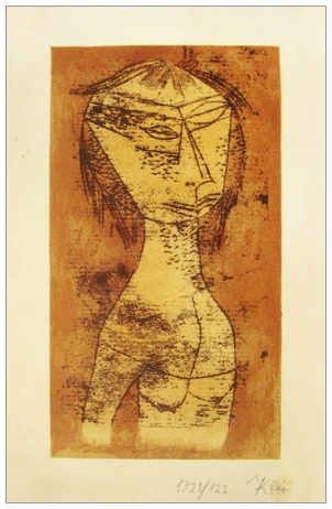 PAUL KLEE Munchenbuchsee (Svizzera) 1879 – Muralto (Svizzera) 1940 Die Heilige vom innern Licht 1921 Litografia a colori su carta zigrinata es.122. Data esemplare e firma a matita in b. a d. (38,8 x 26,5 foglio – 31 x 17,4 lito) Tiratura: 100 es. num. arabi + 10 es. riservati per l’Edizione Deluxe + 20 es. di prova riservati all’artista. Editore e Stampatore: Staatliches Bauhaus, Weimar, (Germania). Pubbl.: - Archivio Bauhaus / Museo del design, Berlino (Germania). - Catalogo galleria Kornfeld, Stoccarda (Germania) n.81. - “The Print in Germany 1880 – 1933” cat. a cura di Frances Carey e Antony Griffiths, BM 1984, n.200. La presente opera è stata acquistata presso la Christie’s, asta 2593, New York, Rockefeller Plaza, 31 ottobre 2012. (stimata da 7,000 a 10,000 $ e aggiudicata a 6,875 $) pubblicata nel catalogo d’asta.
