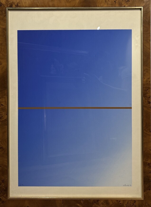 litografia "Composizione astratta", 70 x 50 cm, es. P.A, 1975, firma indistinta a matita in basso a destra. In cornice.