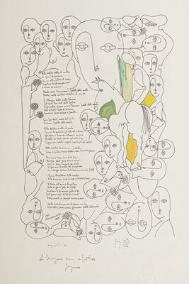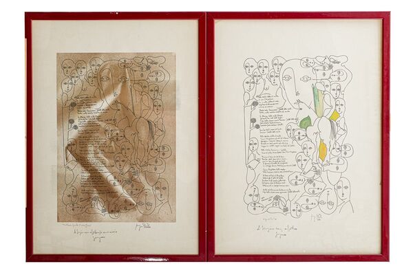 litografia su carta cm 70 x 50 di cui una acquerellata a mano e l'altra a colori che fa parte di una tiratura speciale di 5 esemplari. Entrambe con dedica e firma, in cornice