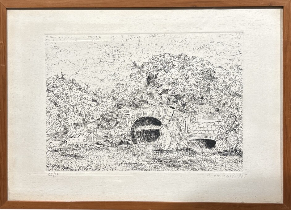 litografia "Paesaggio", es. n. 55/99, 34 x 48 cm, firma a matita in basso a destra. In cornice.