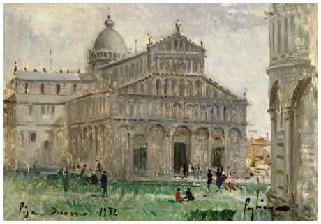 FRANCESCO PAGLIAZZI Reggello 1910 – 1988 Pisa, Duomo 1952 Olio su tavola 16 x 21,2. Località, titolo e data in b. a s.; firma in b. a d.