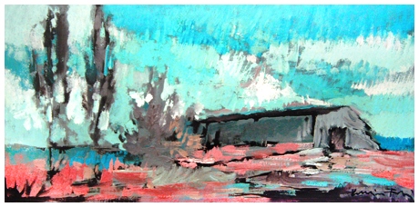 VOLTOLINO FONTANI Livorno 1920 - Livorno 1976 Paesaggio Olio su faesite 20 x 40. Firma in b. a d.; sul verso titolo.