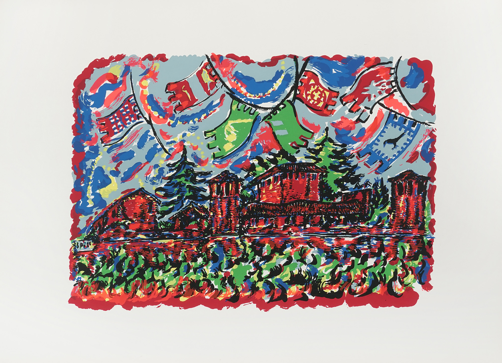 In-folio (mm 685x490). [4] carte di testo e 20 belle tavole serigrafiche a colori di Piero Gauli. Una tavola risulta staccata e parzialmente rifilata. Legatura editoriale in mezza tela, con piatto anterio in cartonato illustrato dall'Artista. Copia non numerata, di una tiratura di 160 esemplari. Lievi difetti. (1) Le tavole, pensate appositamente da Piero Gauli per questo progetto editoriale, danno vita a un'opera di raffinata qualità grafica e forte impatto visivo. Una delle tavole risulta distaccata dal fascicolo, ma l'esemplare si presenta nel complesso in buone-ottime condizioni. Esponente del gruppo Corrente, insieme a nomi come Treccani, Birolli, Migneco e Cassinari, e conosciuto per il suo accentuato cromatismo, Gauli sviluppò nel tempo una poetica personale che, attraverso tecniche come inchiostri e acquerelli, lo portò a una progressiva dissoluzione della forma, fino al limite dell'astrazione informale. In Omaggio a Legnano, l'artista elabora immagini che oscillano tra memoria urbana e visione trasfigurata, restituendo una narrazione poetica ed evocativa del paesaggio e della storia della città.
