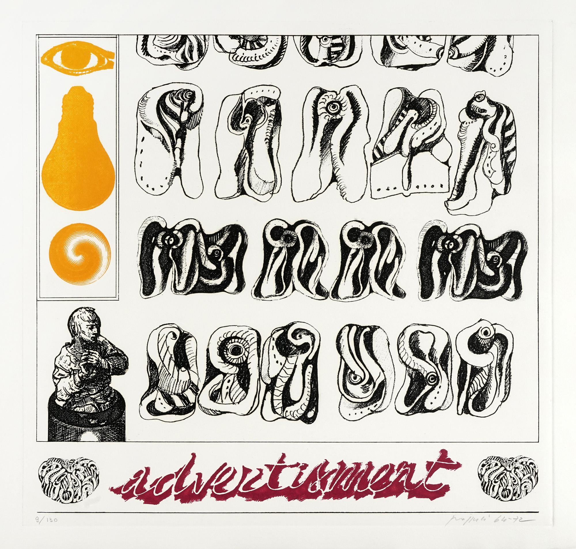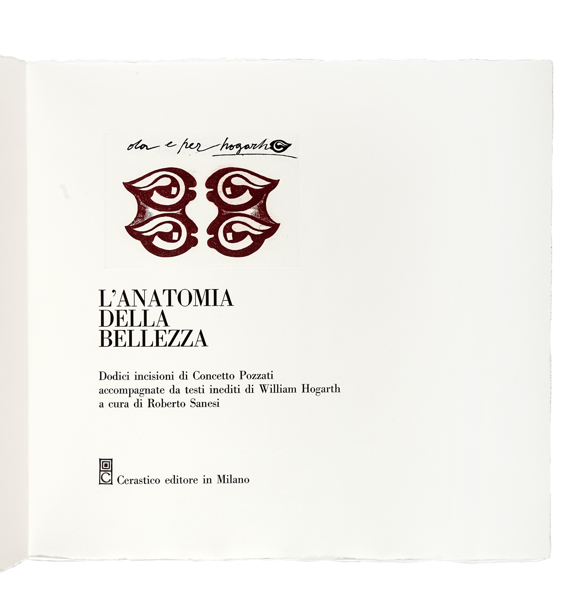 Pozzati Concetto, L'anatomia della bellezza. Dodici incisioni [...] accompagnate da testi di William Hogarth. Milano: Cerastico editore, [1974].