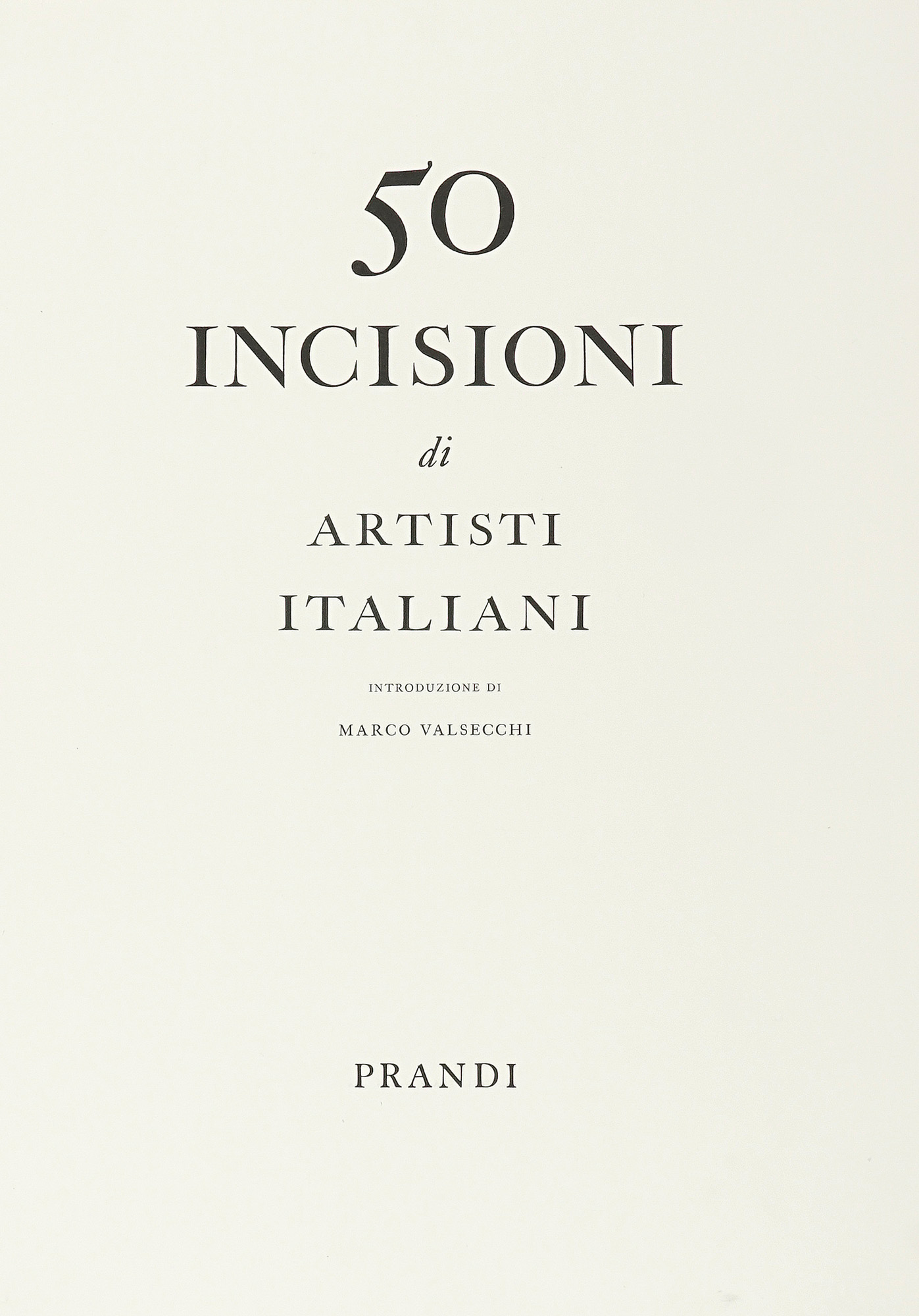 Valsecchi Marco, Cinquanta Incisioni di artisti italiani. Con un'introduzione di Marco Valsecchi. Reggio Emilia: Prandi, 1963.